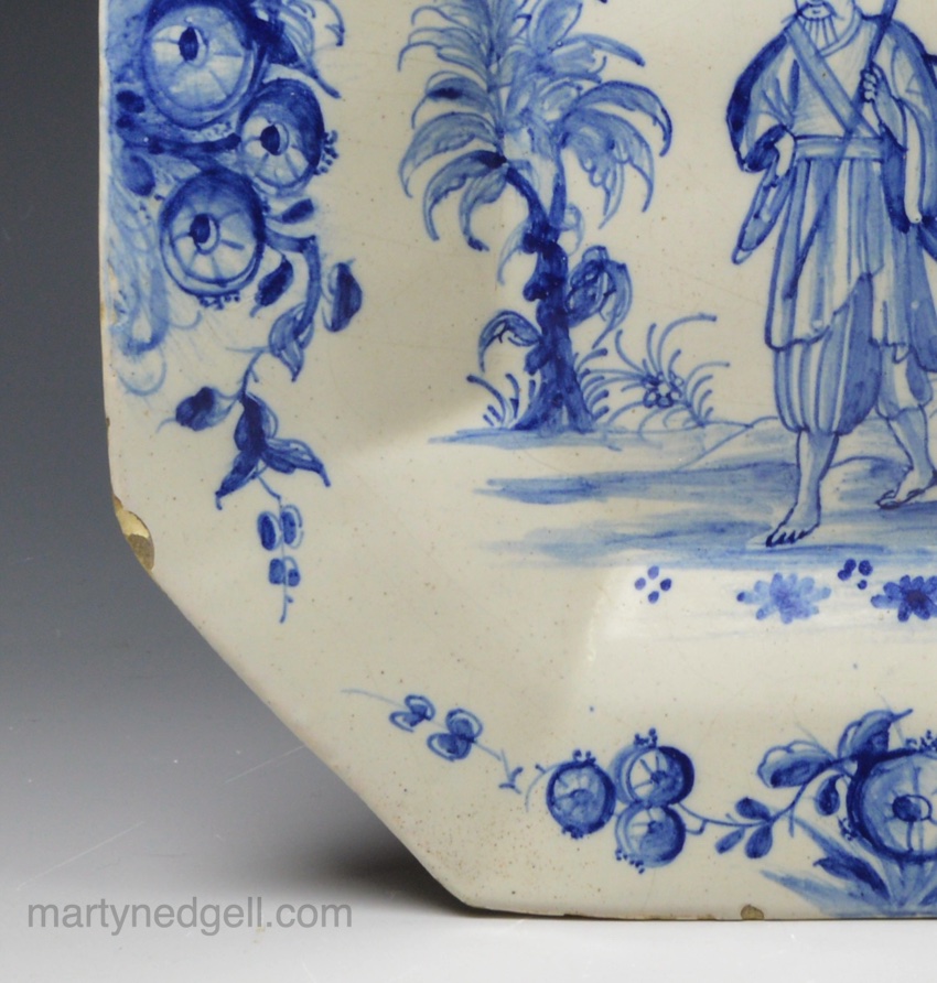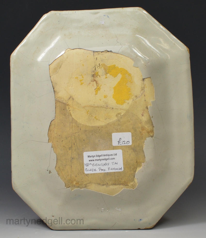 Condition: Chips to the rim and some of the tin glaze on the back has flaked off