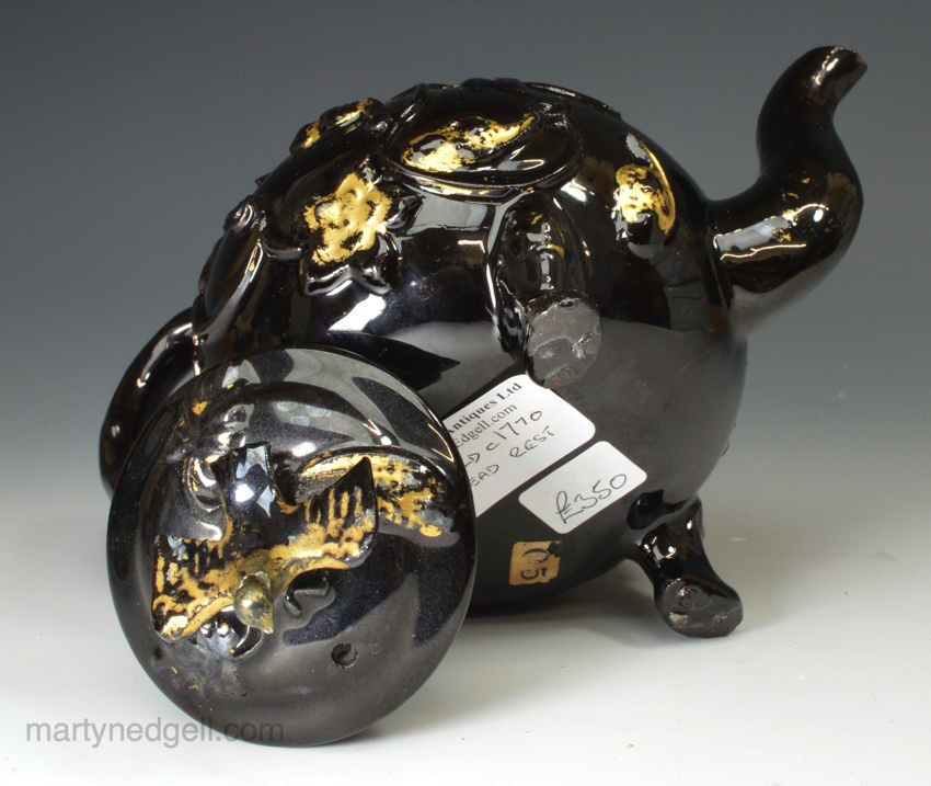 / Staffordshire Jackfield black teapot with honey gilding, circa 1770
