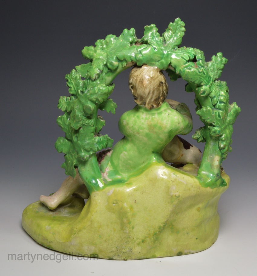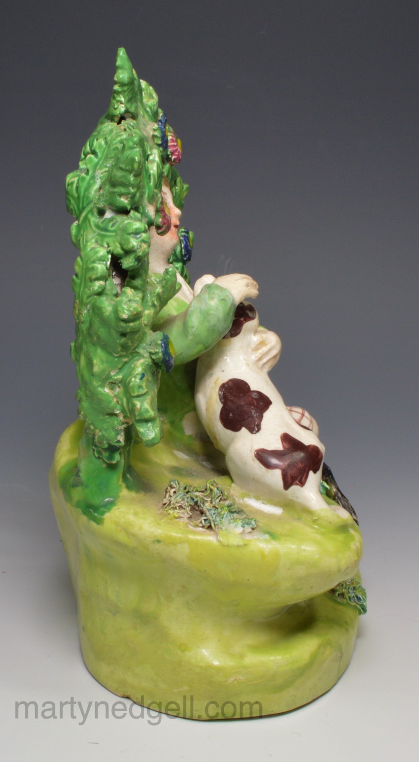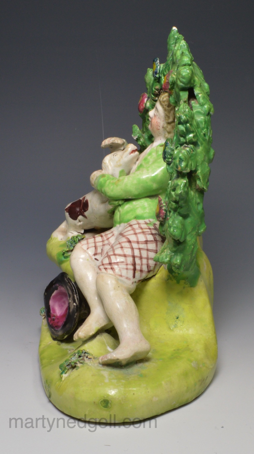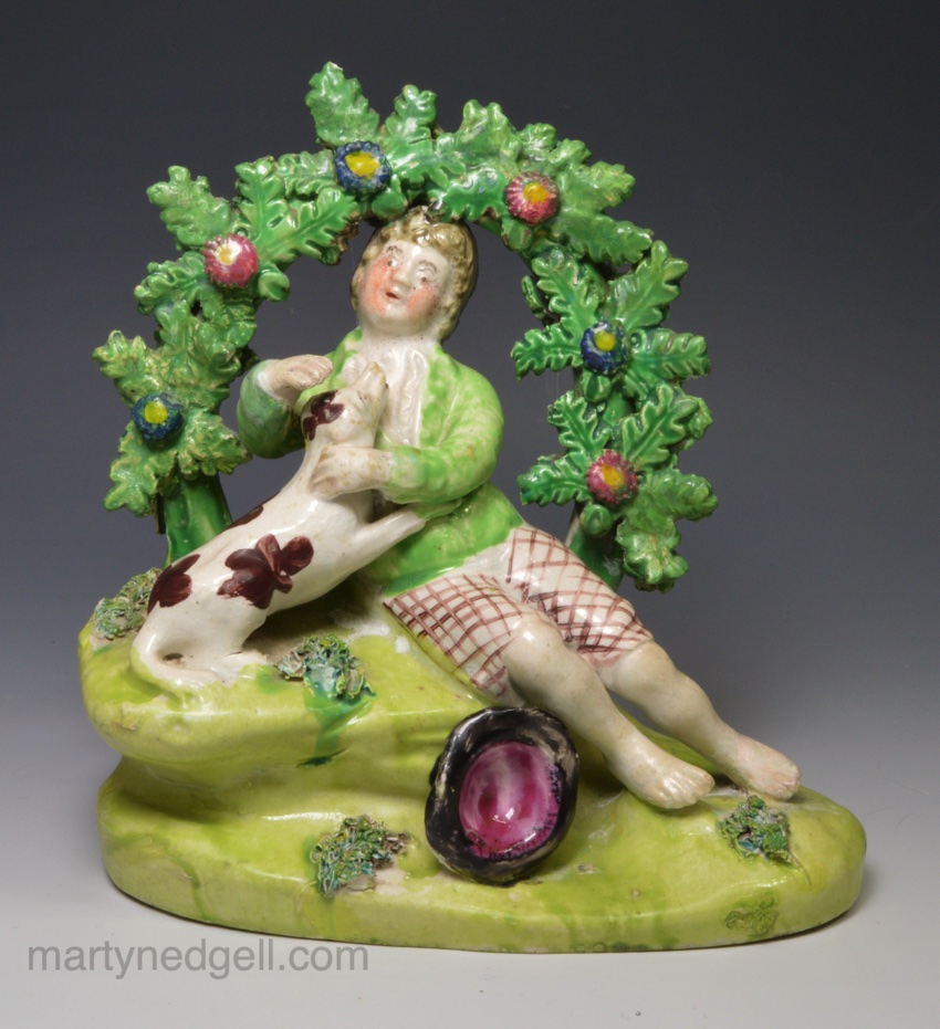 / Staffordshire pearlware pottery bocage figure boy and dog, circa 1820