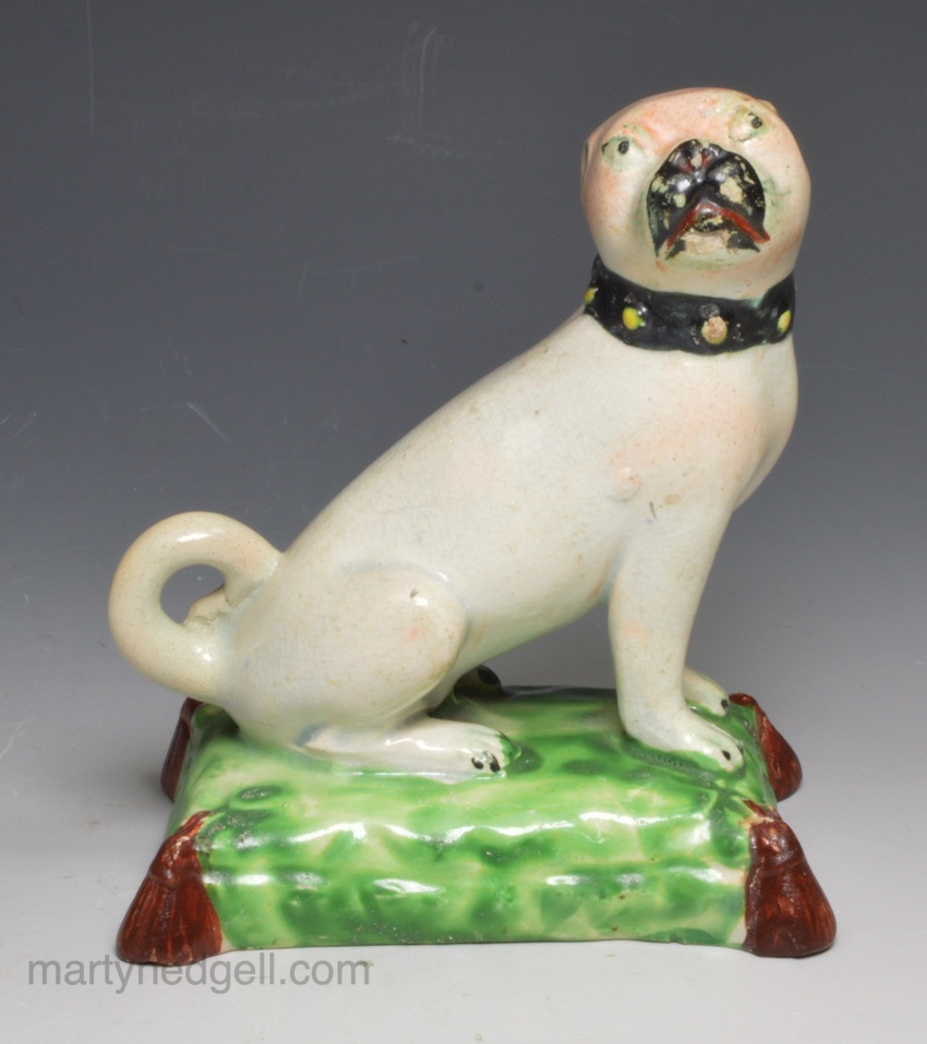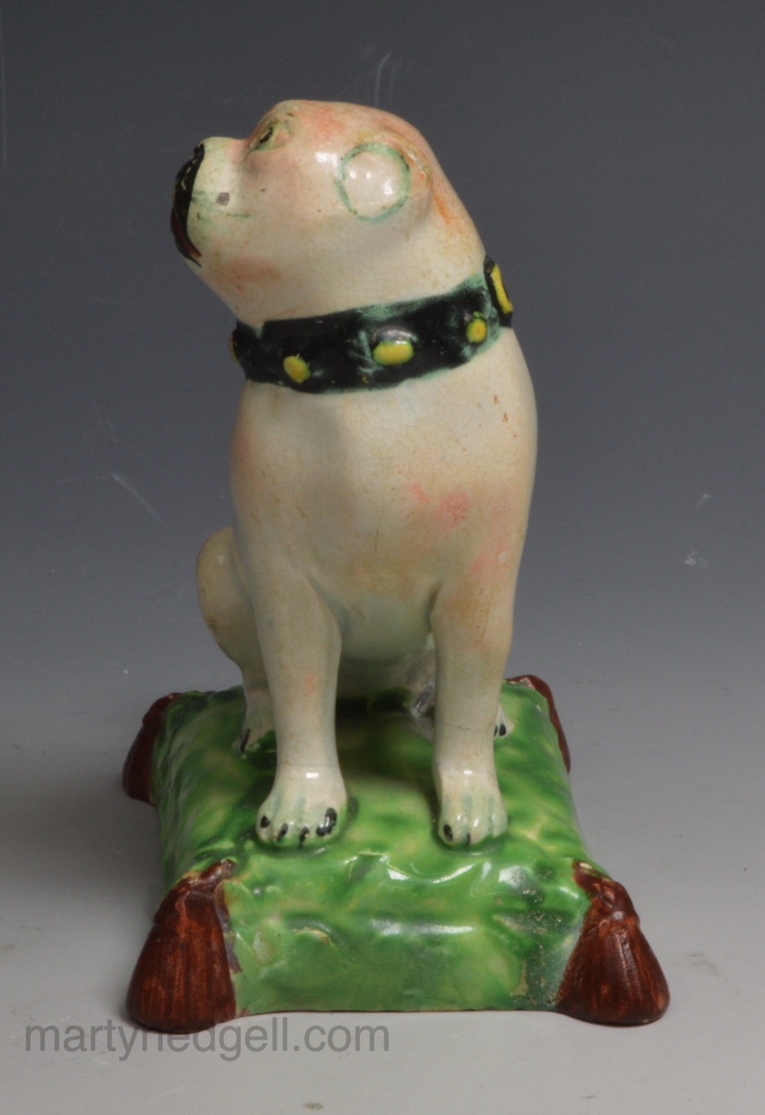 / Staffordshire pearlware pottery figure of a dog, circa 1820