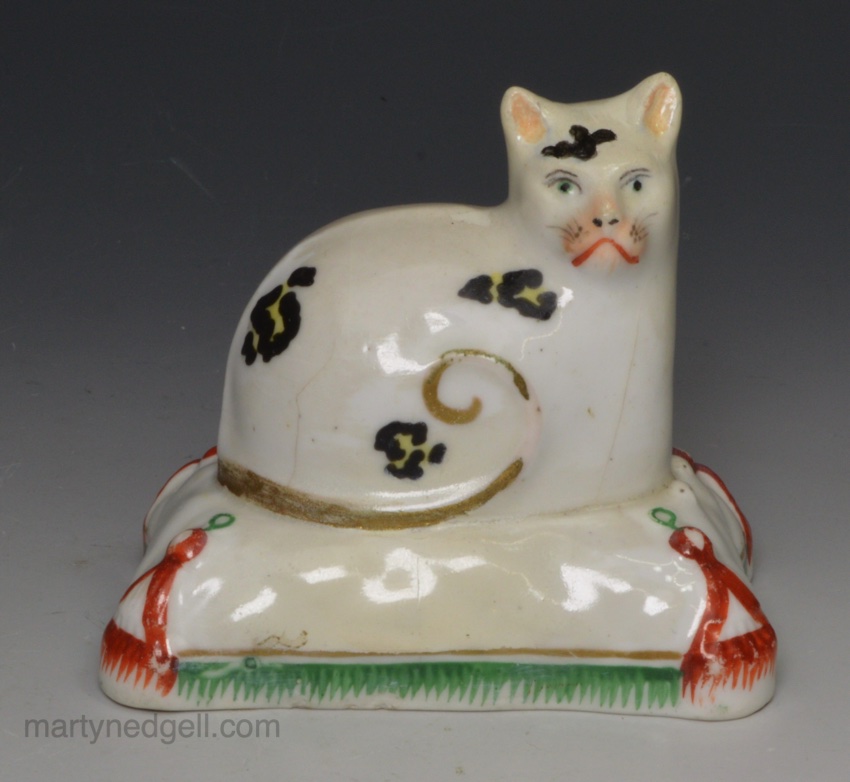 / Staffordshire porcelain figure of a cat, circa 1840