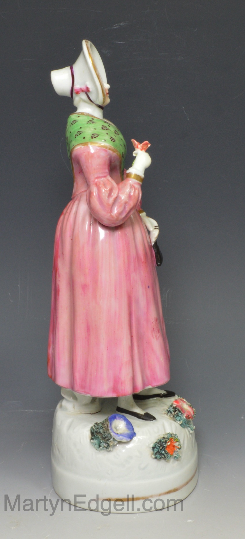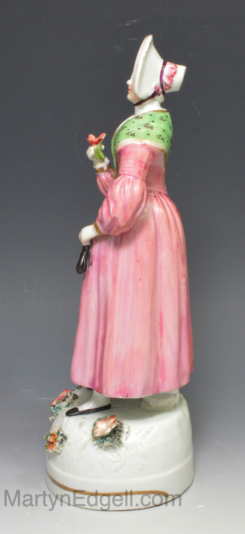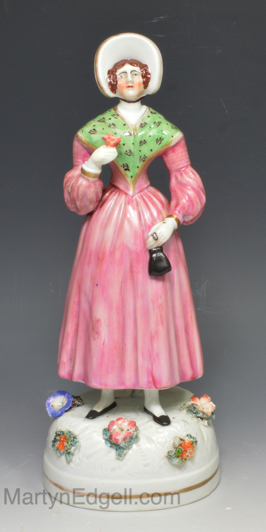 / Staffordshire porcelain figure of a lady holding a flower, circa 1840