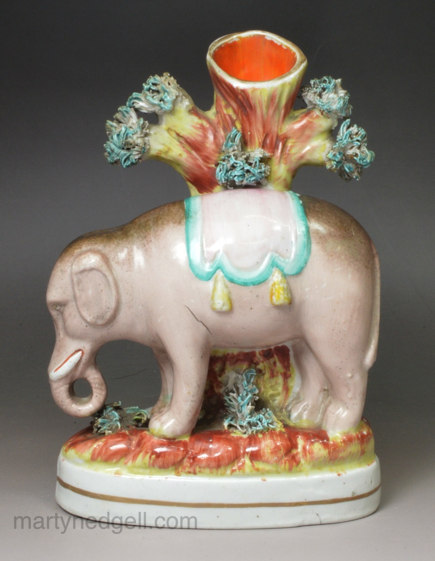 / Staffordshire pottery circus elephant spill vase, circa 1860