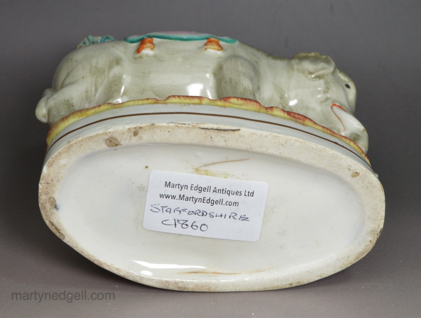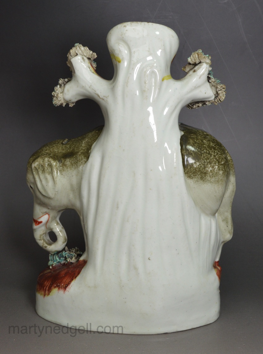 Staffordshire pottery circus elephant spill vase, circa 1860