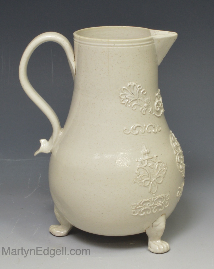 / Staffordshire white saltglaze stoneware milk jug, circa 1760
