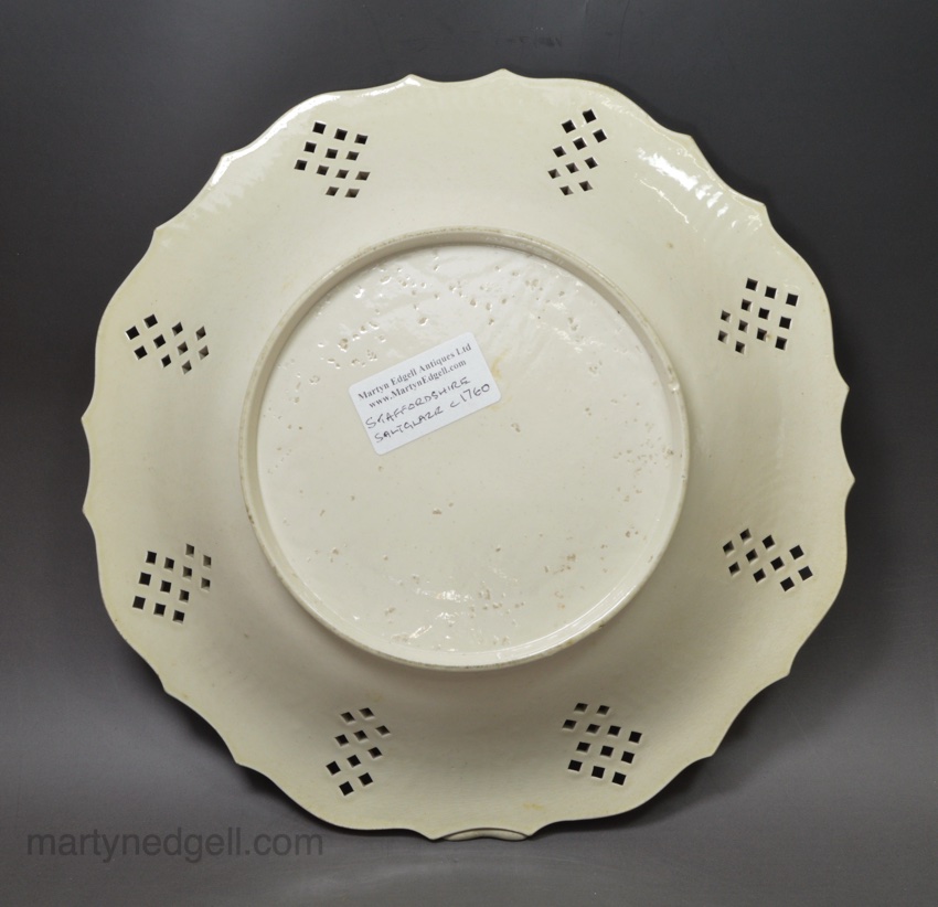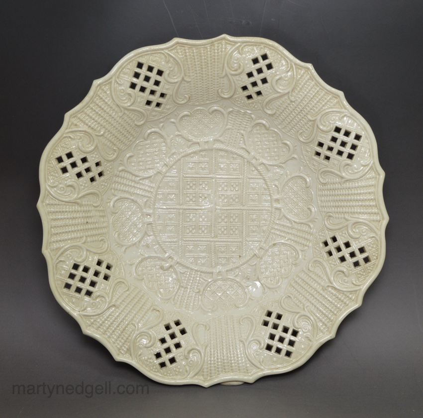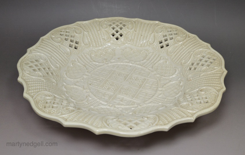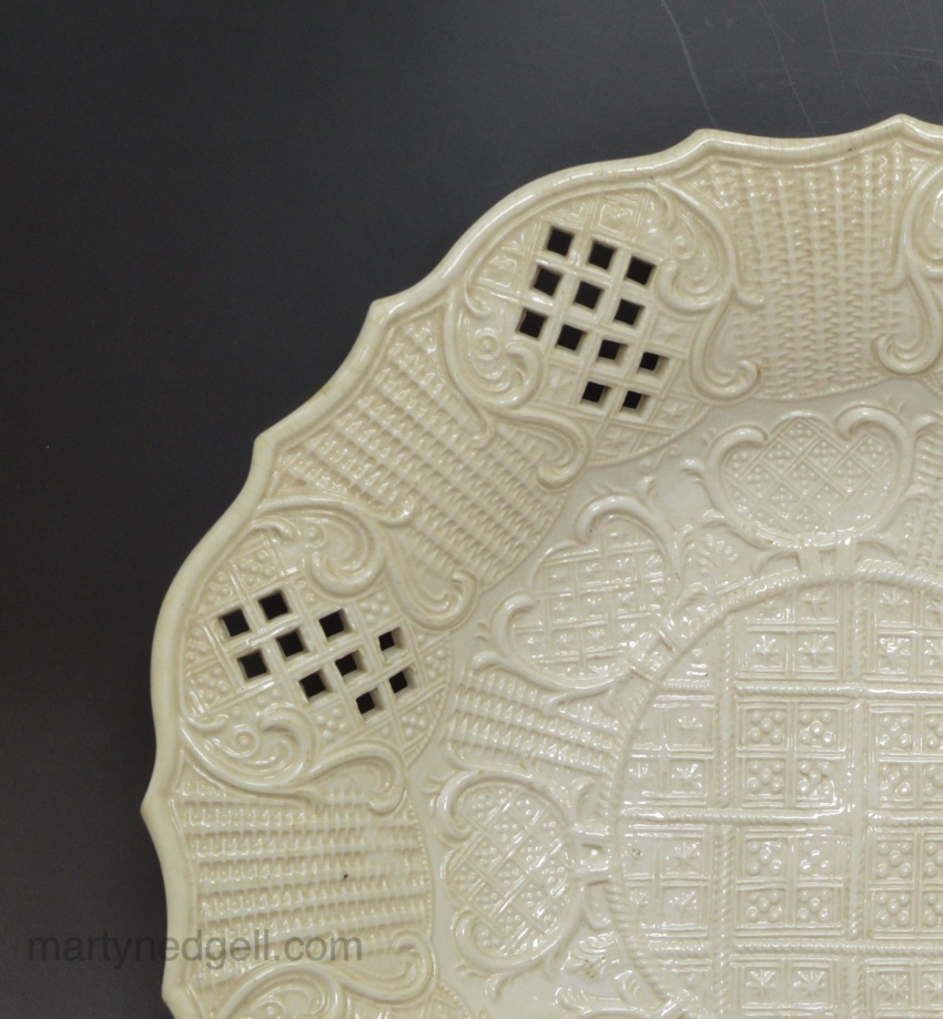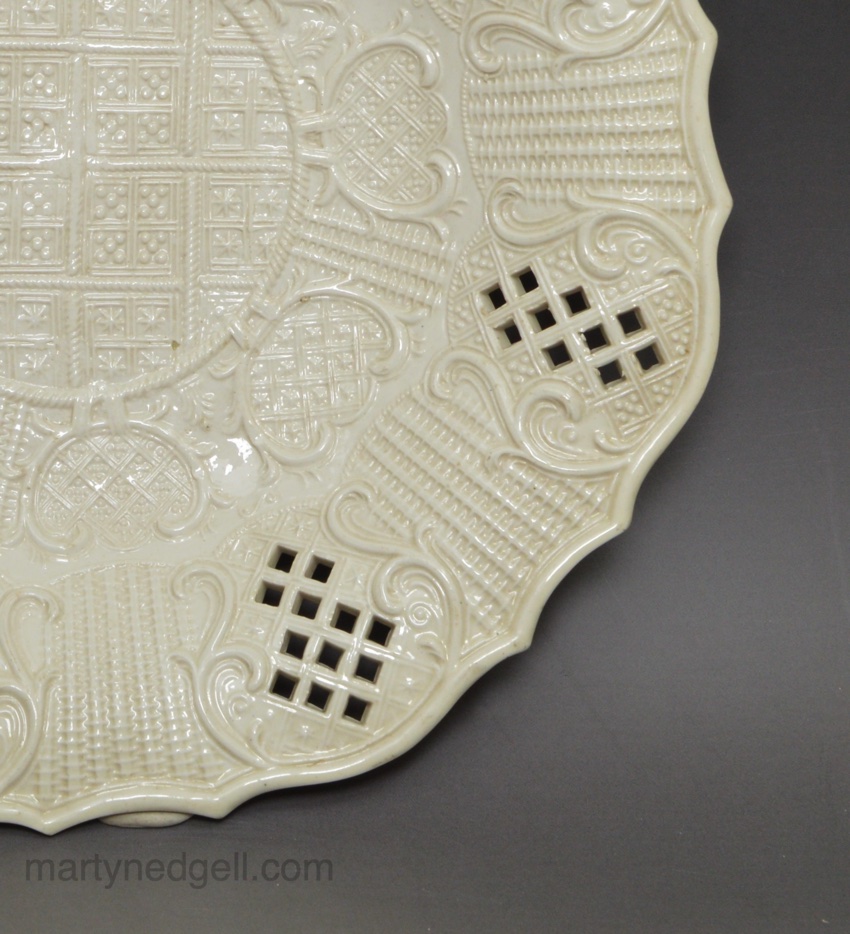 / Staffordshire white saltglaze stoneware moulded and pierced dish, circa 1760