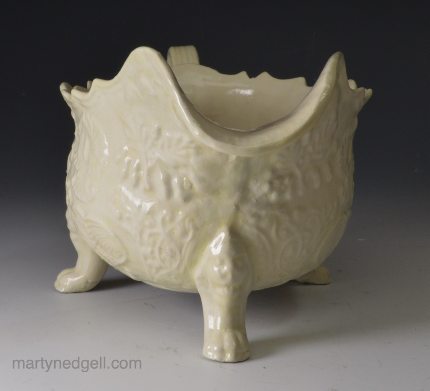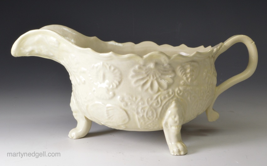 / Staffordshire white saltglaze stoneware sauce boat, circa 1760