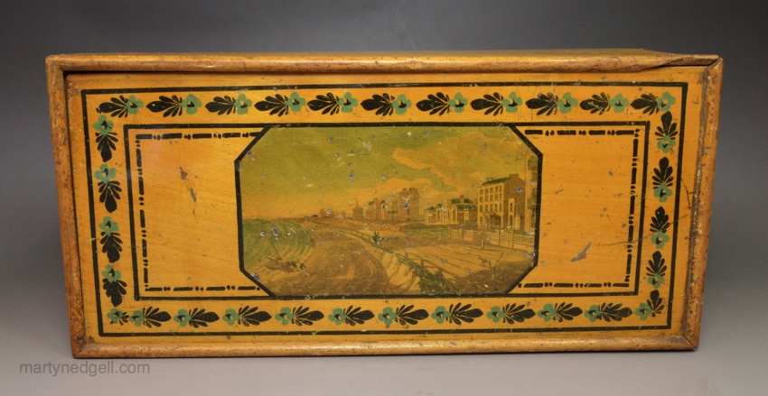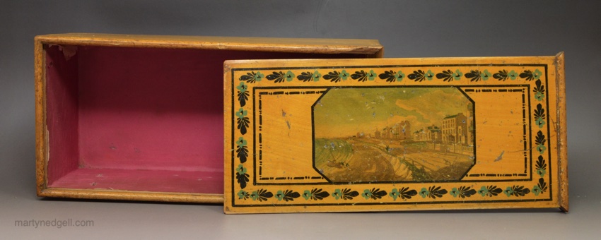 Tunbridge glove box decorated with a view of Marine Parade, Brighton , circa 1840