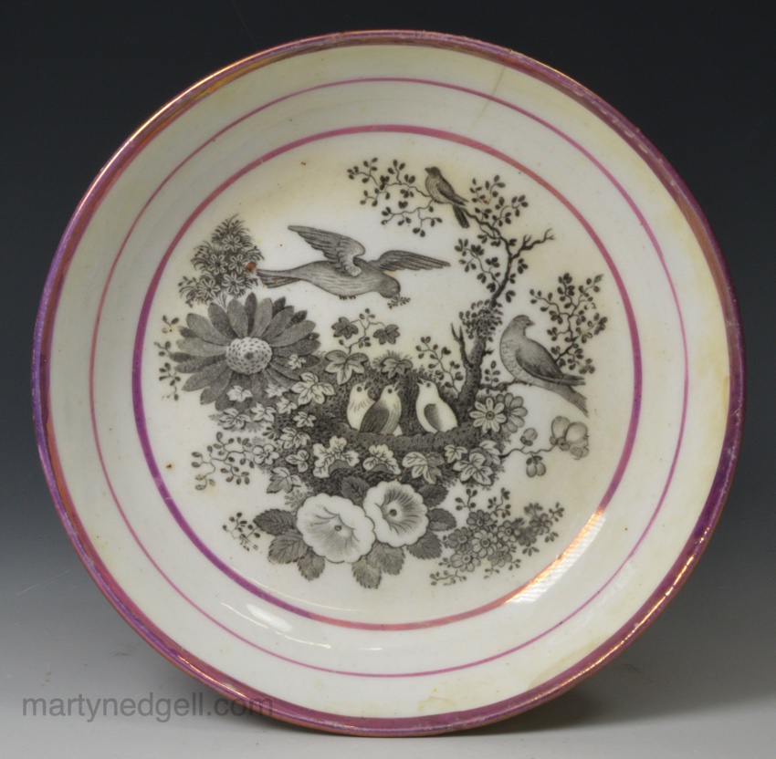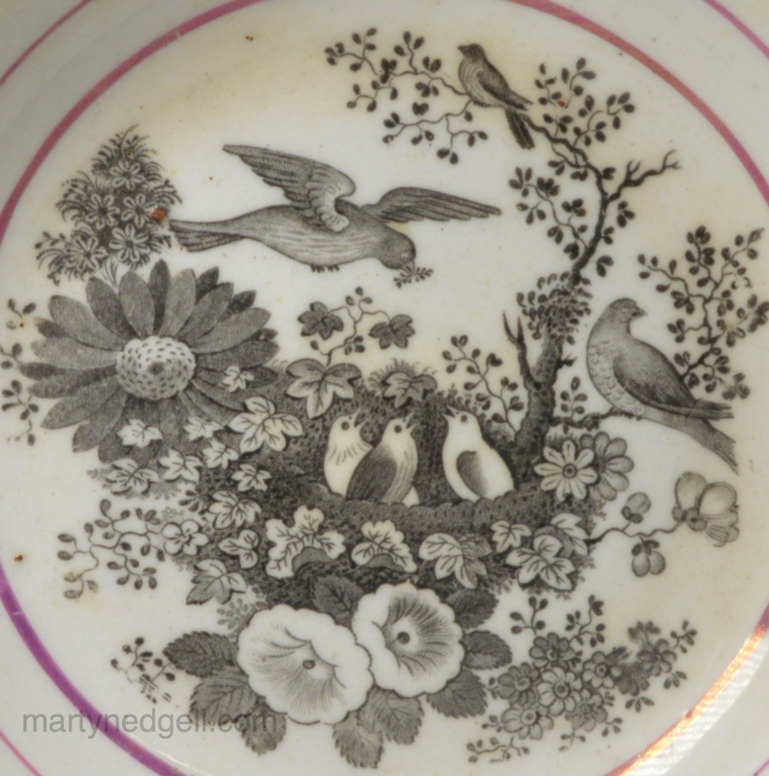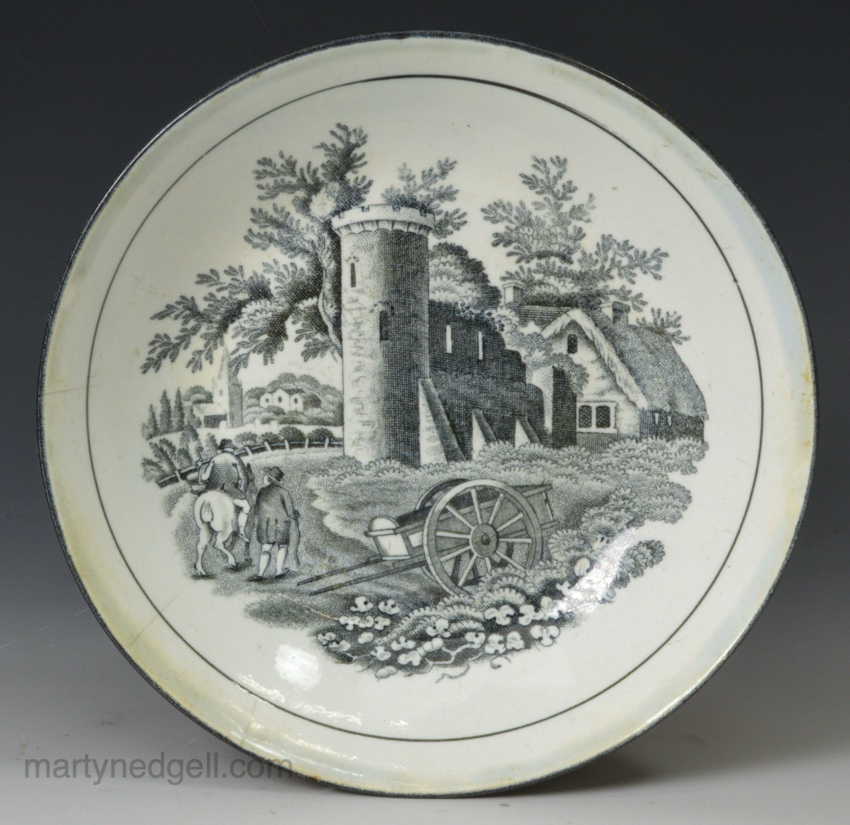 Pearlware saucer was exhibited at the Northern Ceramic Society exhibition in Manchester 1976