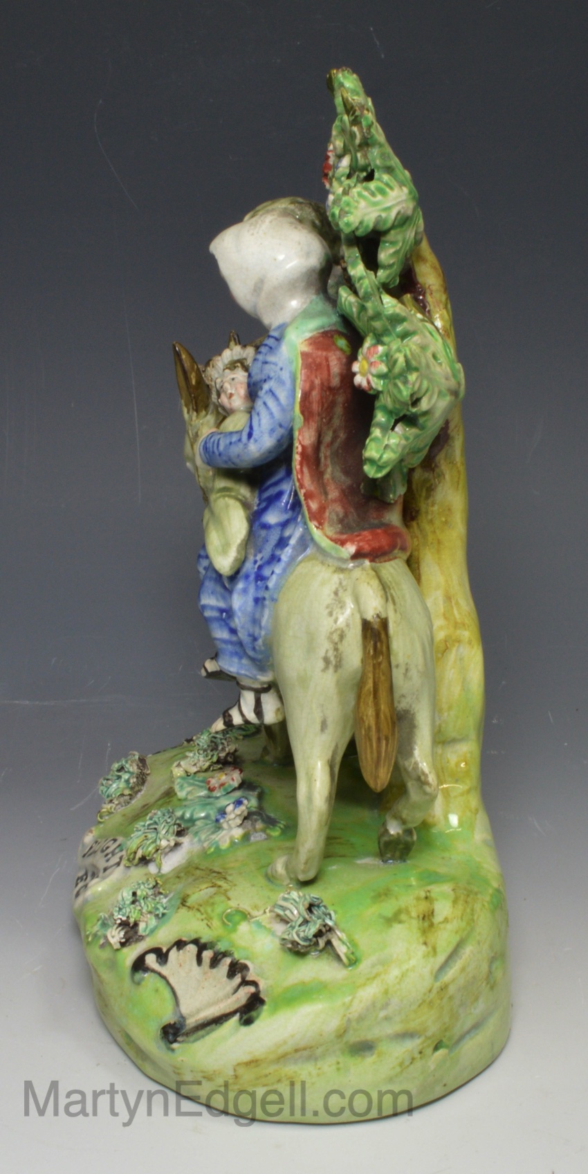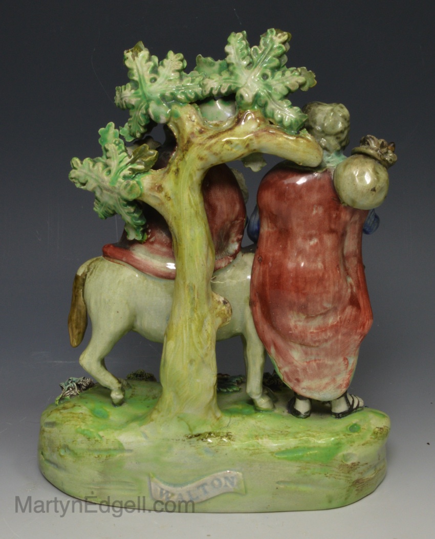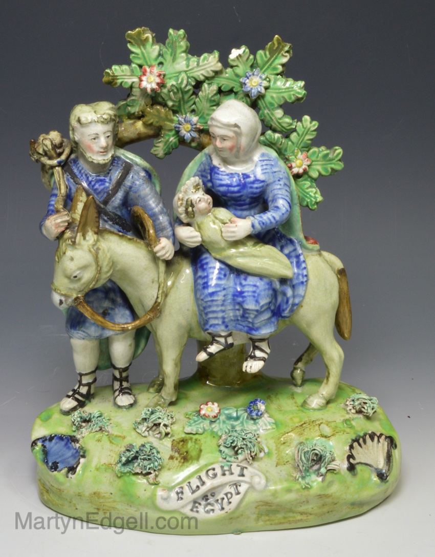 ‘WALTON’ Staffordshire pearlware pottery biblical figure of Mary, Joseph and Jesus ‘FLIGHT TO EGYPT’, circa 1820