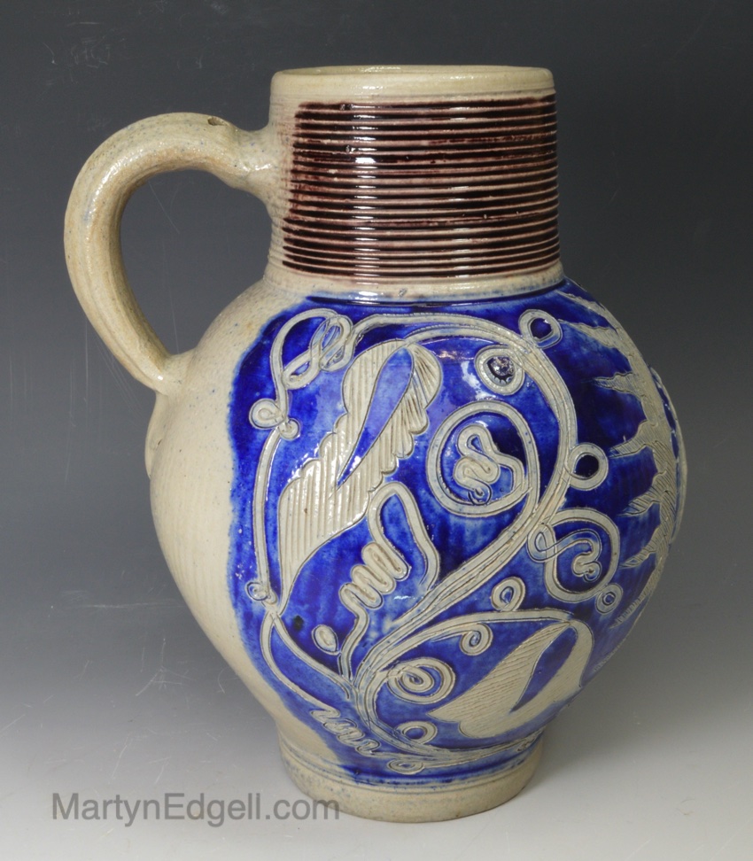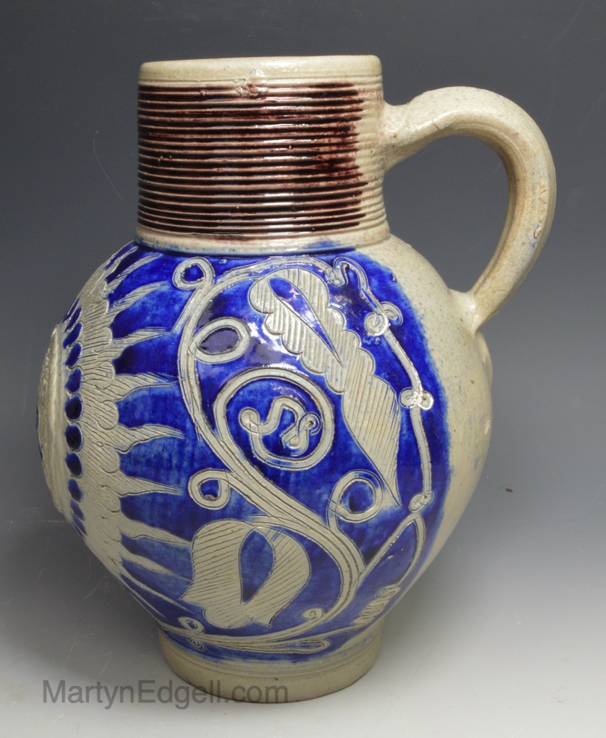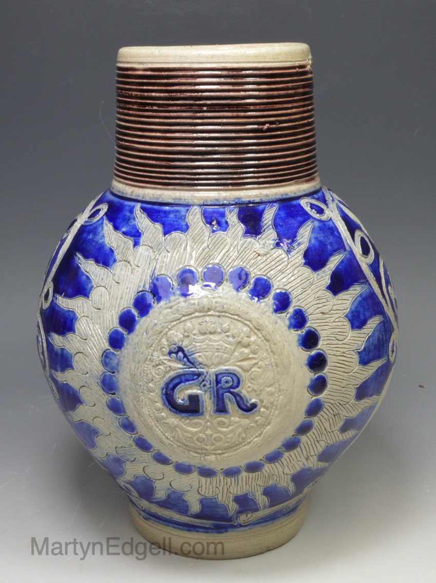 Westerwald saltglaze stoneware ‘GR’ jug, circa 1720