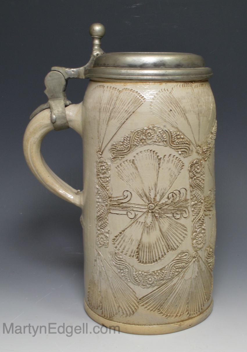 Westerwald saltglaze stoneware tankard, circa 1800