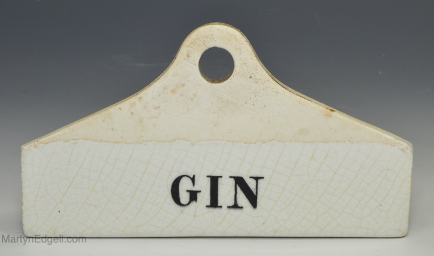 / White terracotta part glaze bin label ‘GIN’, circa 1820
