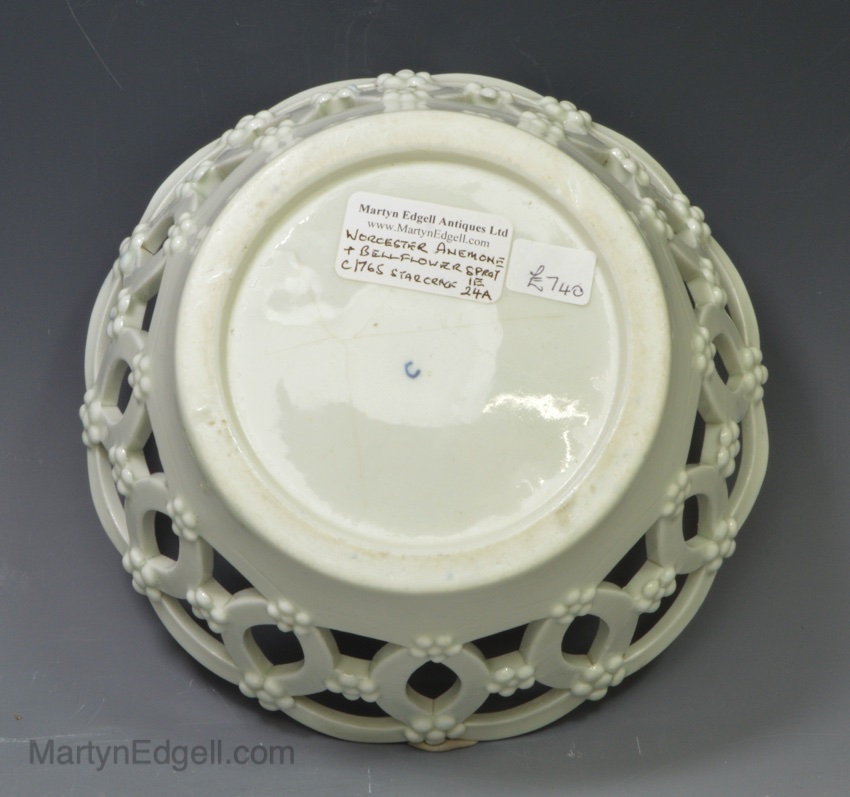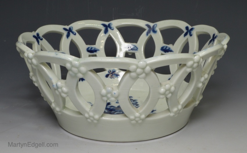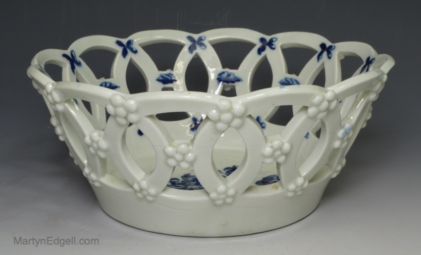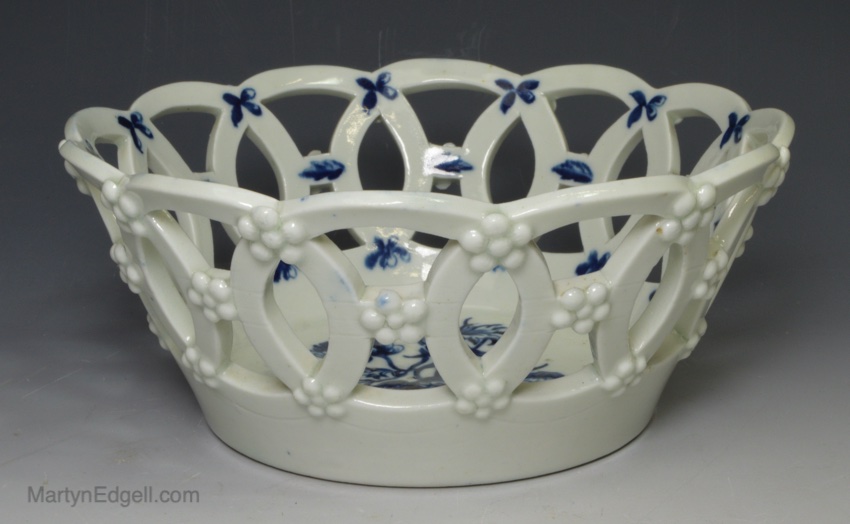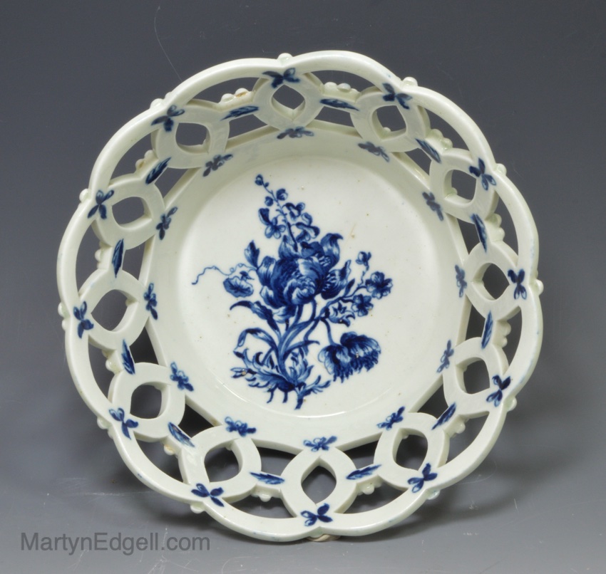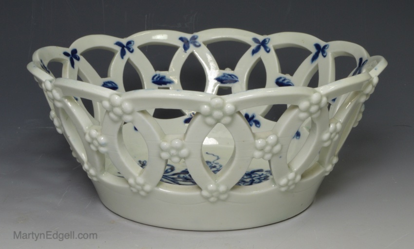 / Worcester porcelain basket printed with anemone and bellflower spray, circa 1765